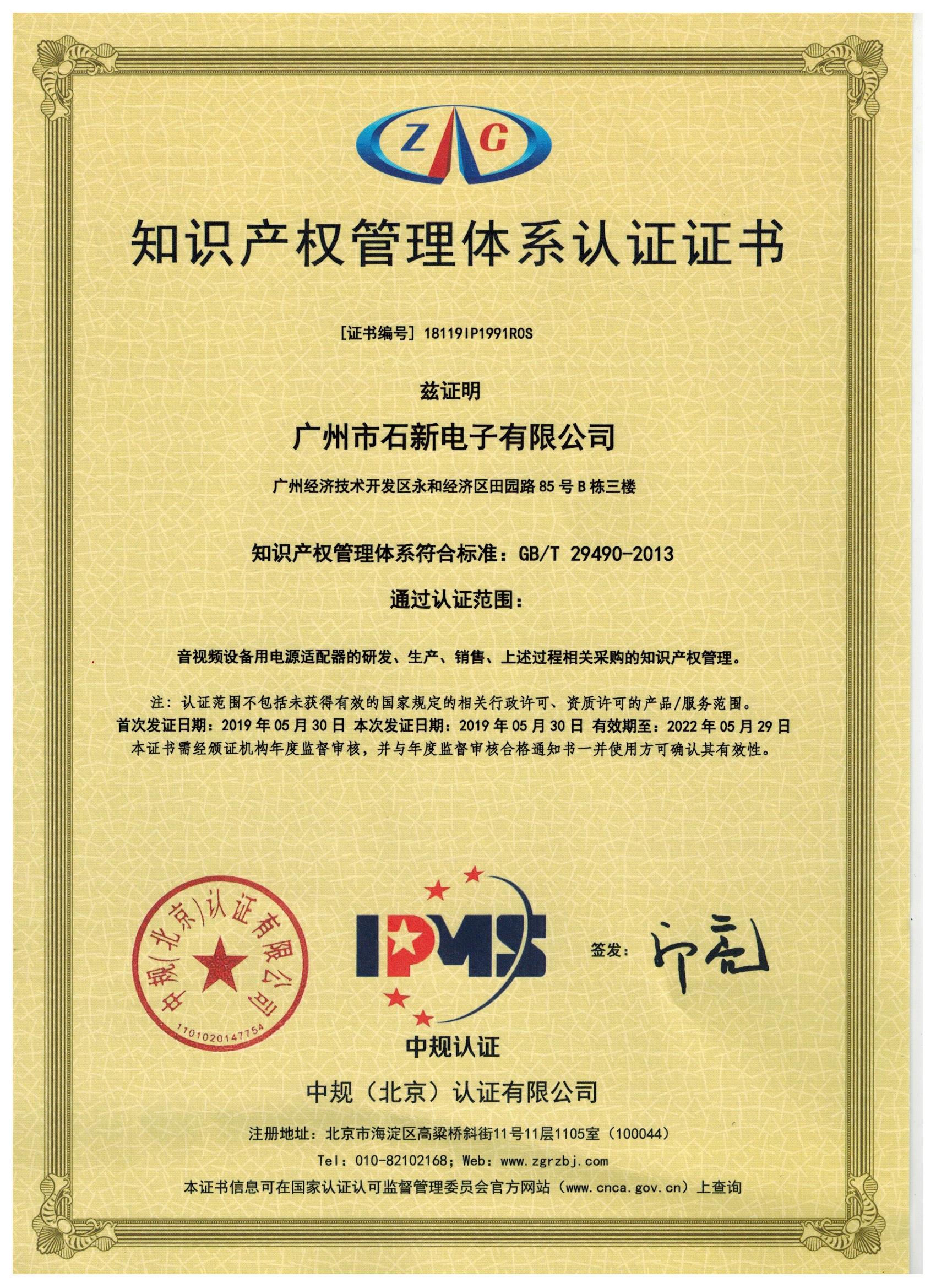 知識產權體系認證證書